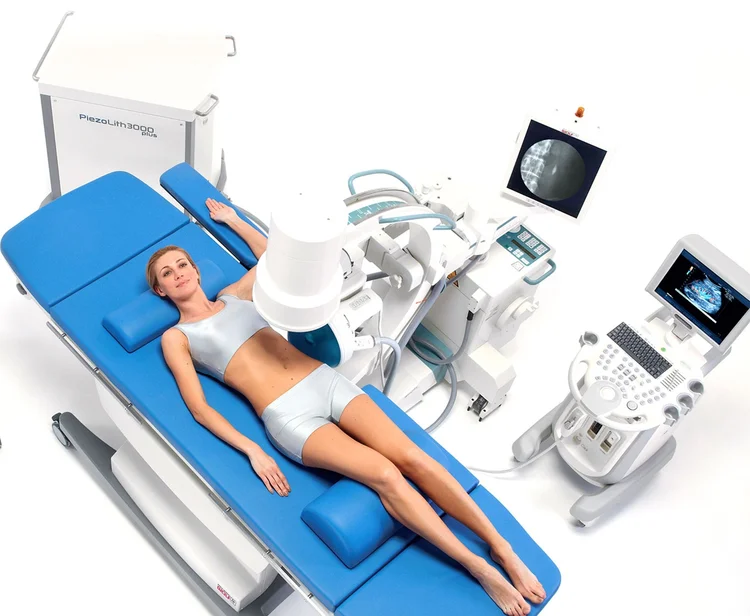 Extracorporeal Shock Wave Lithotripsy (ESWL) uses focused shockwaves to break the stone into tiny fragments that can pass naturally. Ultrasound or X-ray imaging guides the waves directly onto the stone.